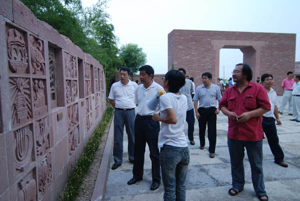 胡斯球考察三门石窗艺术馆