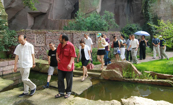 王淼、陈顺水、周绍斌考察三门石窗艺术馆